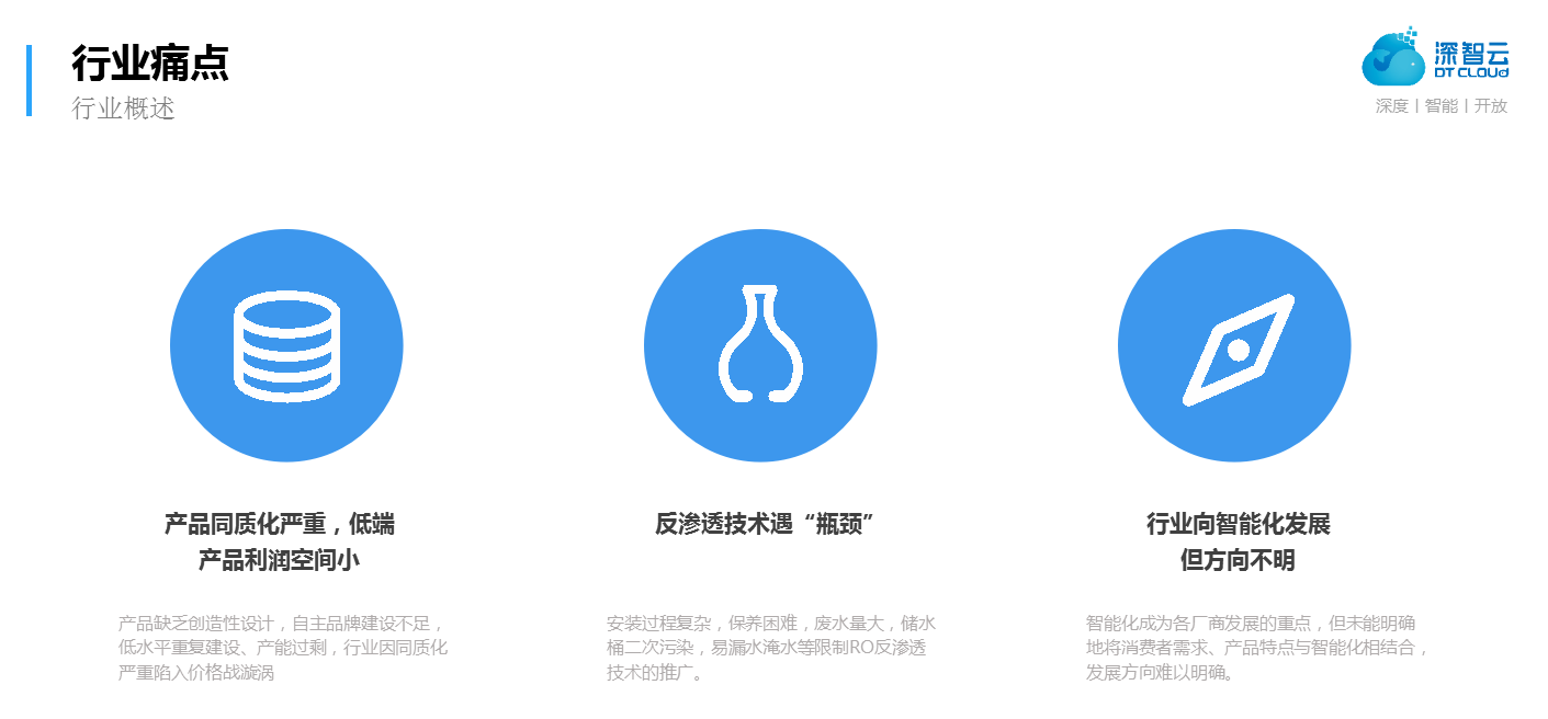 大道至简,顺势而为。面对商业智能时代的浪潮,加速布局物联网,快速实现产品与管理的智能化,是净水厂商实现创新发展与转型突围的必经之路。深智云希望通过我们的产品与服务帮助更多传统净水厂商发展出更多具有价值生命力的创新商业模式,实现企业与行业的双向腾飞。