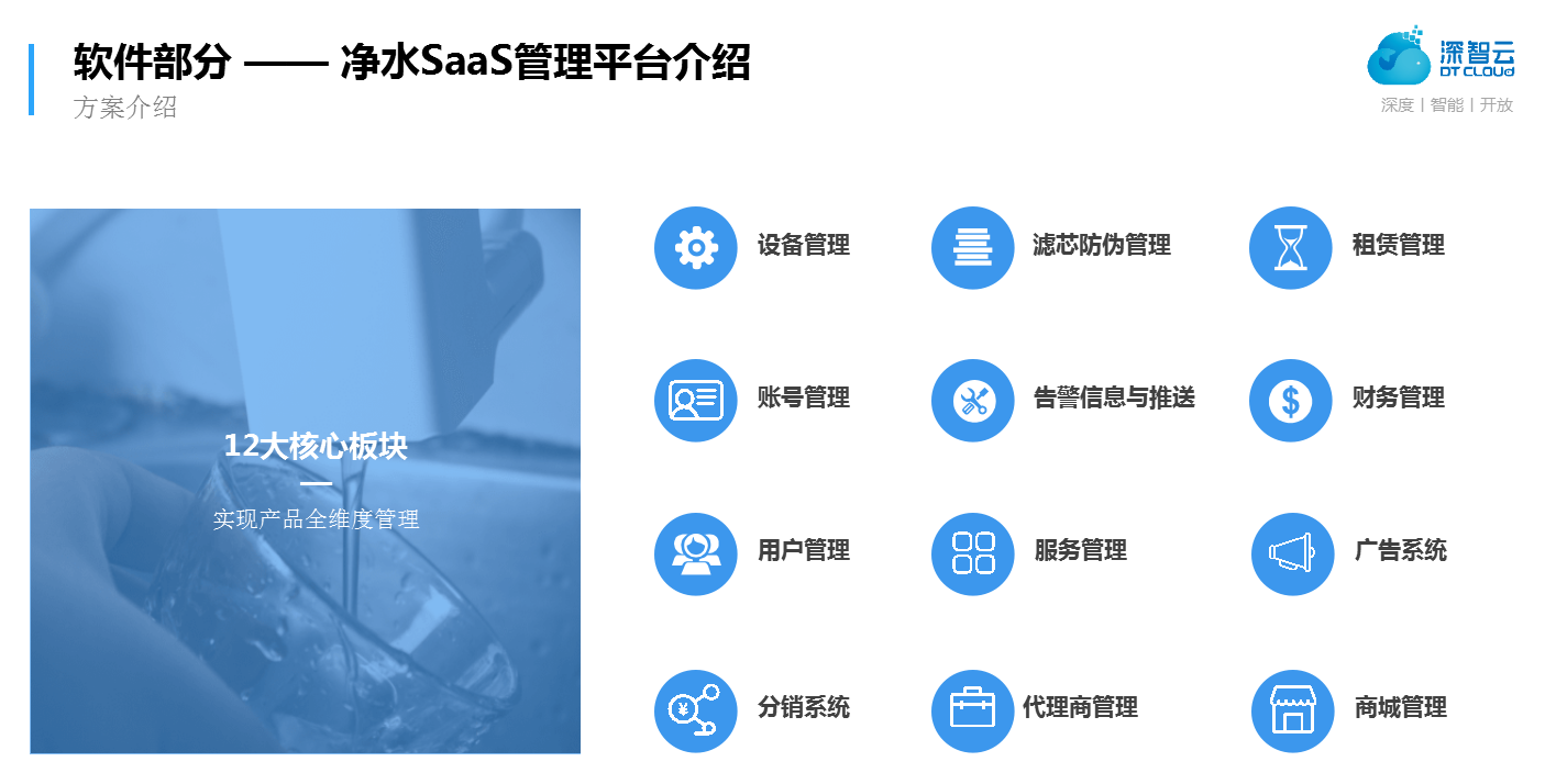 2.深智云净水产品SaaS运营平台,12大核心板块,净水厂商制胜关键