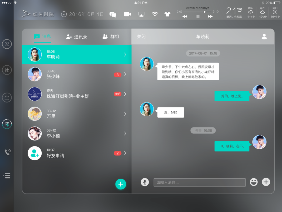 2、邻居好友还可以添加到好友通讯录,方便今后即时联系,聊天功能支持文字、图片、语音、图标等,还可扩展支持视频直播