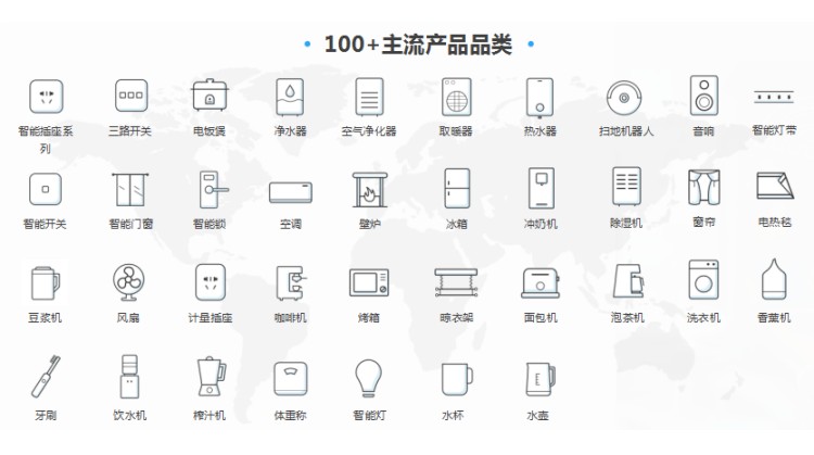 优家数科立足各个品类智能产品开发过程中的共性与特性,依托优家数科的技术资源、服务资源与供应链资源,总结出适用于希望快速实现产品智能化的客户的一套标准化产品模式,本方案目前涵盖100+产品品类,包括充分满足不同厂商的需求。